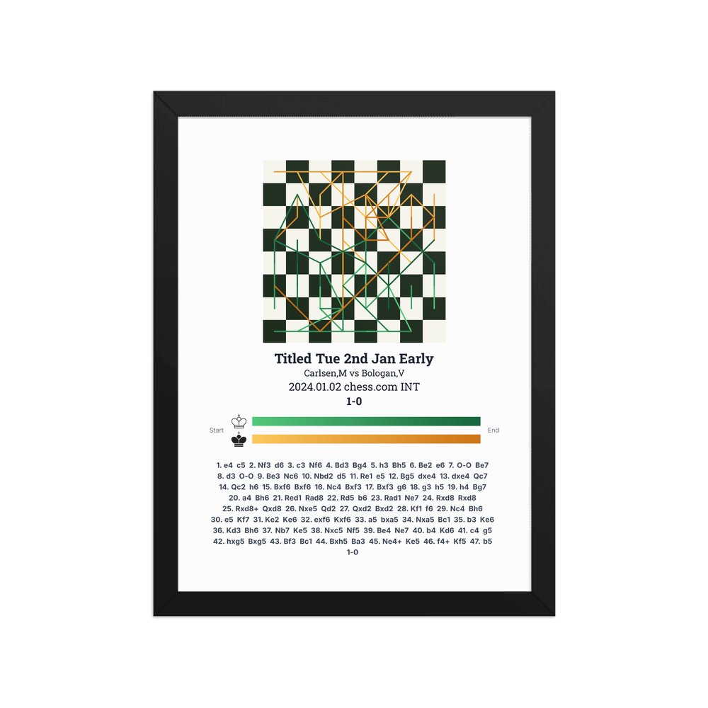 Museum-quality poster on thick, durable matte paper. A sharp, clean look for any chess visualisation.