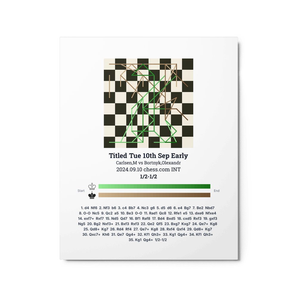 Museum-quality poster on thick, durable matte paper. A sharp, clean look for any chess visualisation.