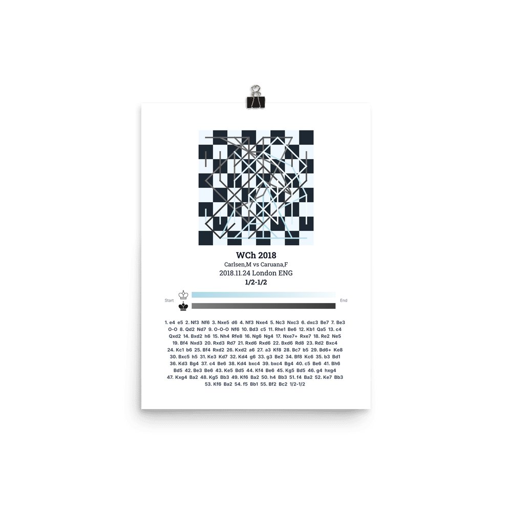 Museum-quality poster on thick, durable matte paper. A sharp, clean look for any chess visualisation.