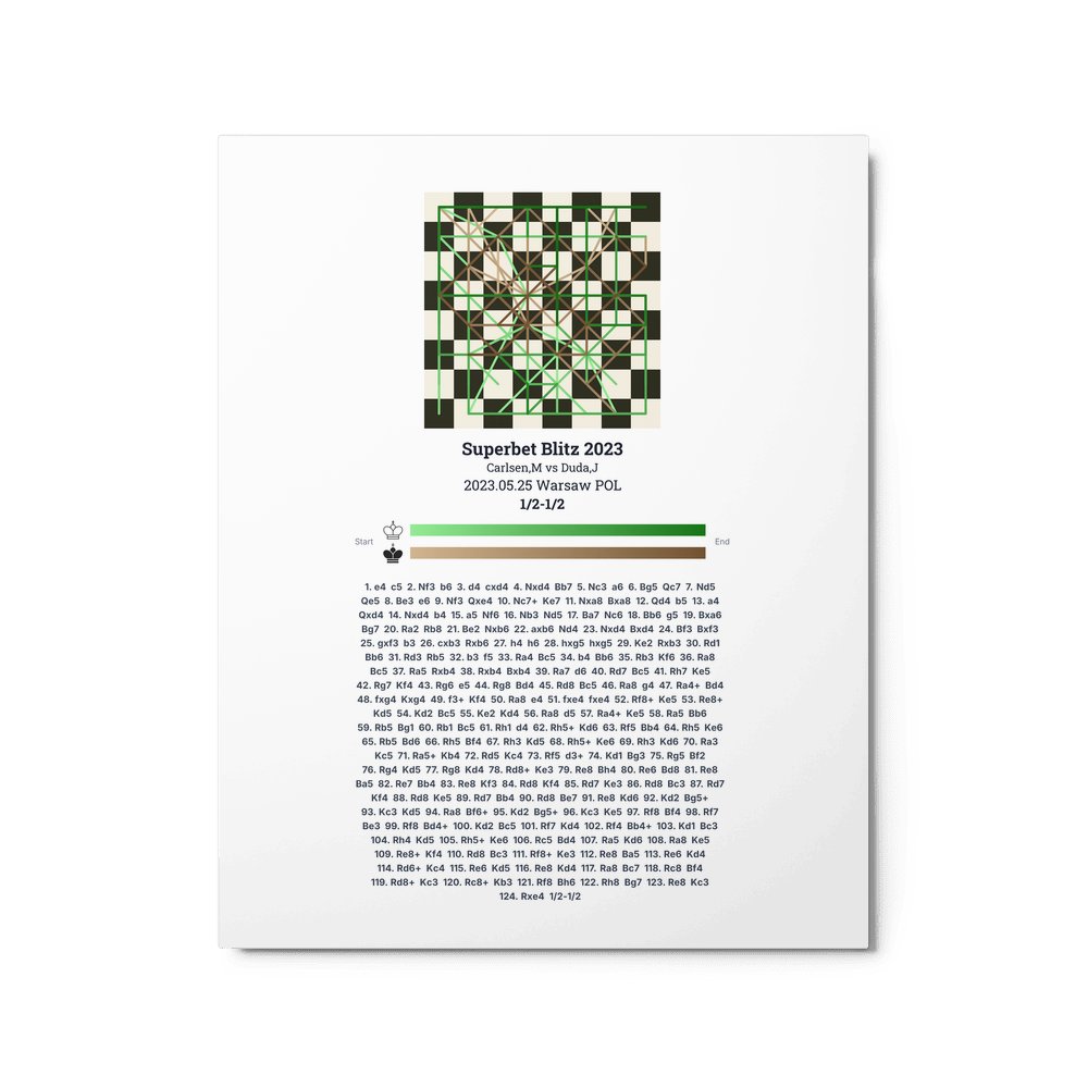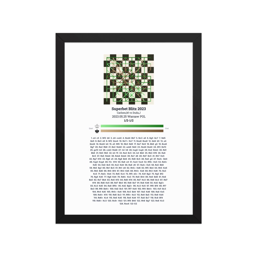 Museum-quality poster on thick, durable matte paper. A sharp, clean look for any chess visualisation.