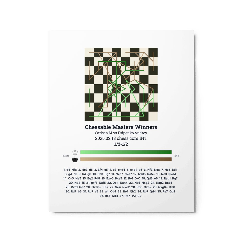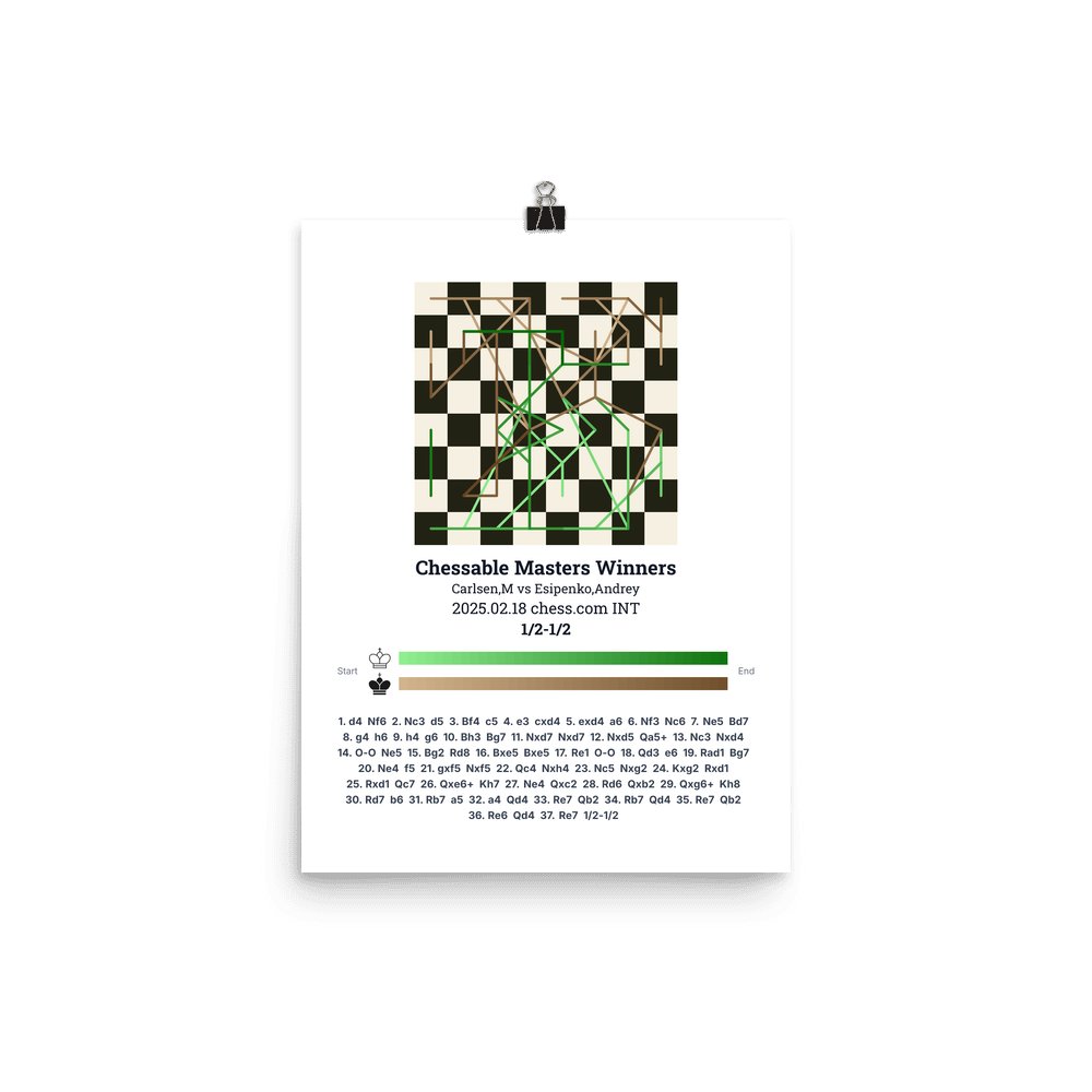 Museum-quality poster on thick, durable matte paper. A sharp, clean look for any chess visualisation.