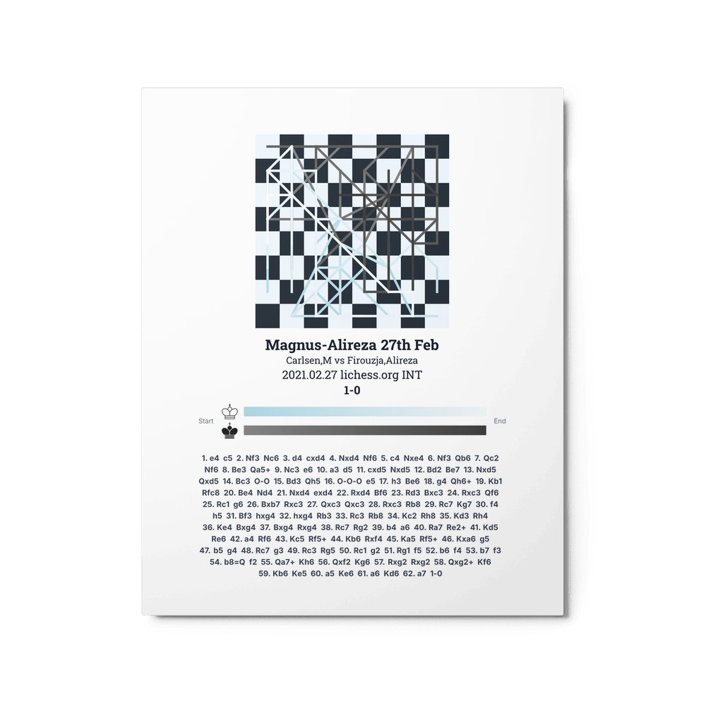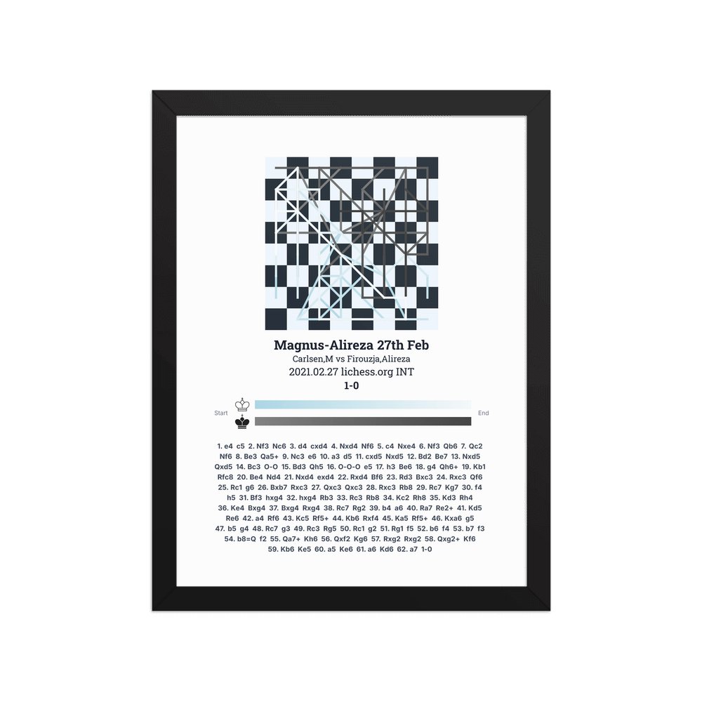 Museum-quality poster on thick, durable matte paper. A sharp, clean look for any chess visualisation.