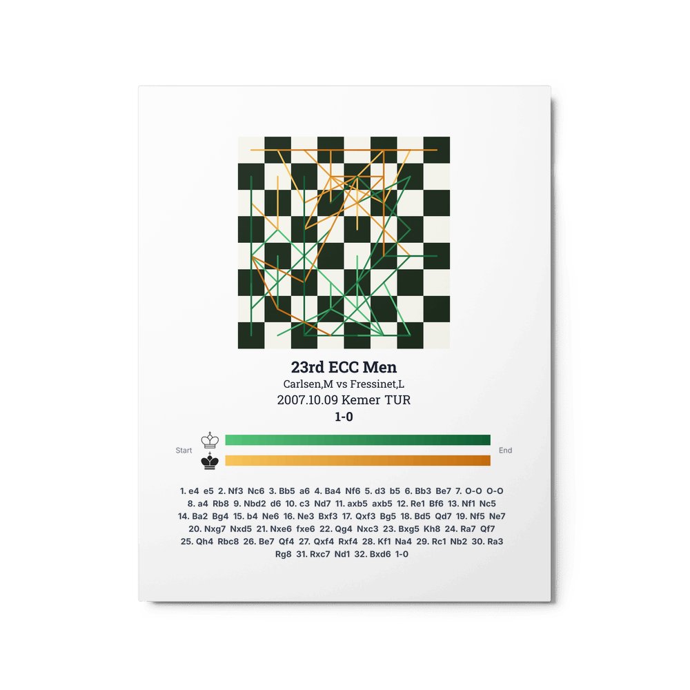 Museum-quality poster on thick, durable matte paper. A sharp, clean look for any chess visualisation.