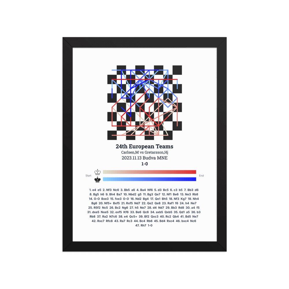 Museum-quality poster on thick, durable matte paper. A sharp, clean look for any chess visualisation.