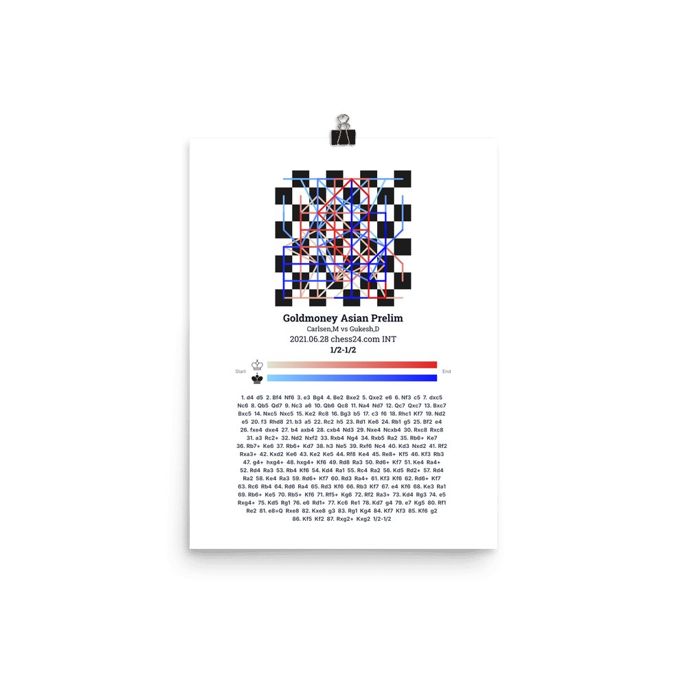 Museum-quality poster on thick, durable matte paper. A sharp, clean look for any chess visualisation.