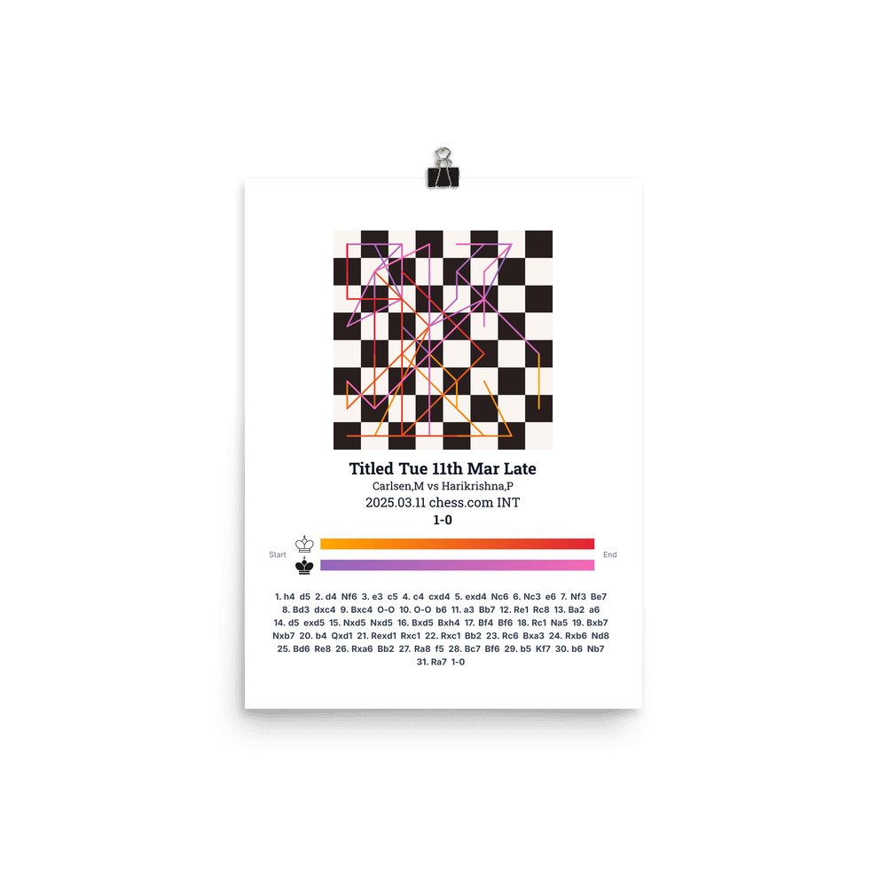 Museum-quality poster on thick, durable matte paper. A sharp, clean look for any chess visualisation.