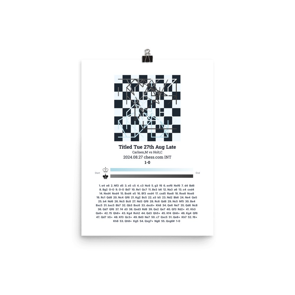 Museum-quality poster on thick, durable matte paper. A sharp, clean look for any chess visualisation.