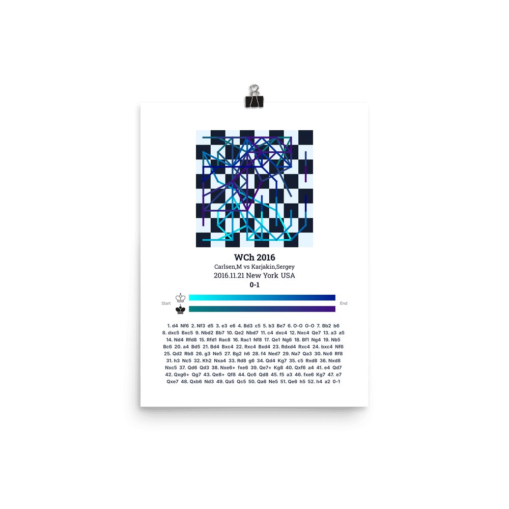 Museum-quality poster on thick, durable matte paper. A sharp, clean look for any chess visualisation.