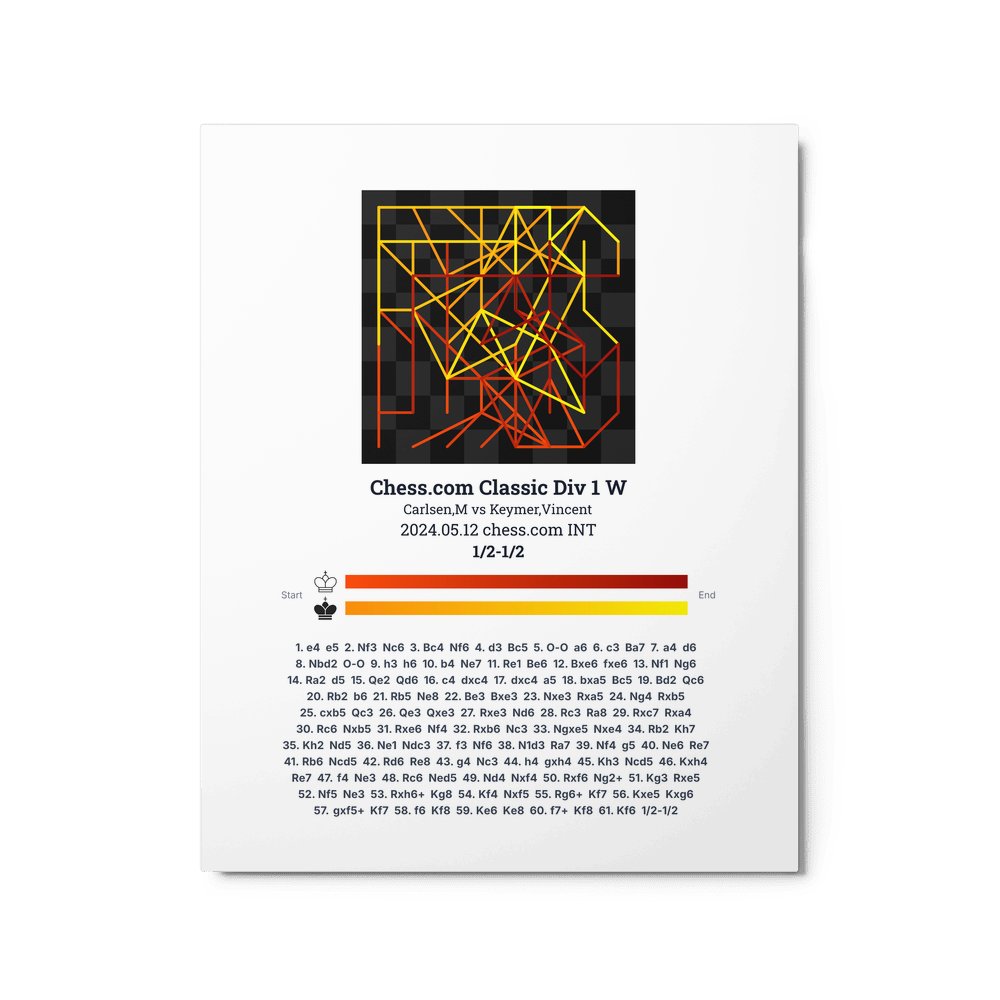 Museum-quality poster on thick, durable matte paper. A sharp, clean look for any chess visualisation.