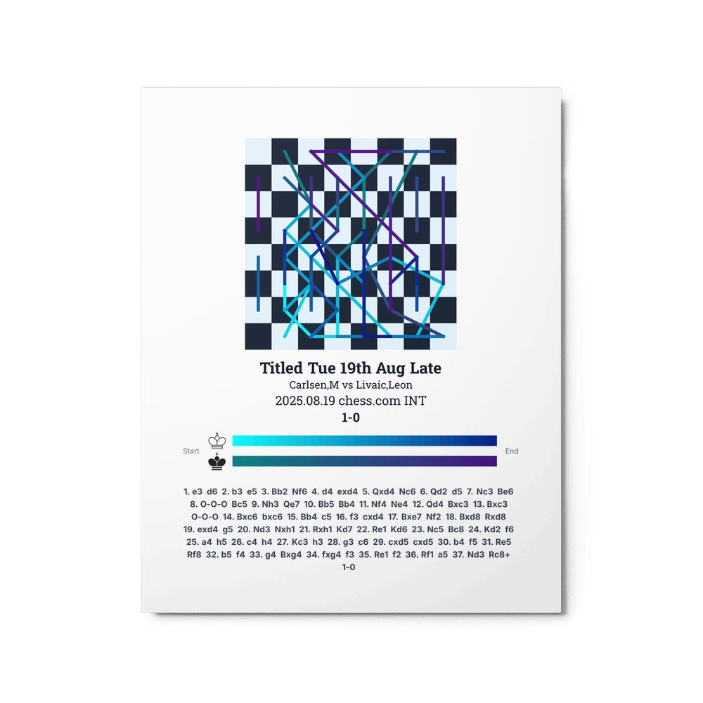 Museum-quality poster on thick, durable matte paper. A sharp, clean look for any chess visualisation.