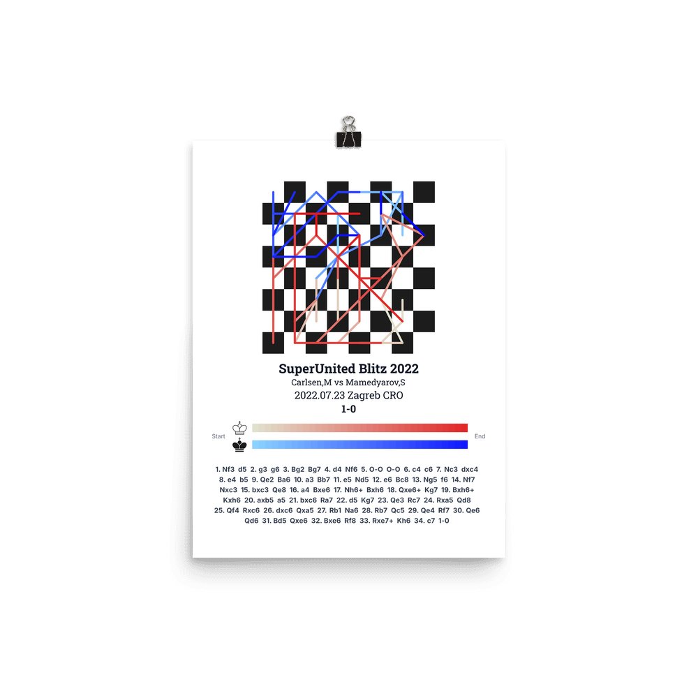 Museum-quality poster on thick, durable matte paper. A sharp, clean look for any chess visualisation.