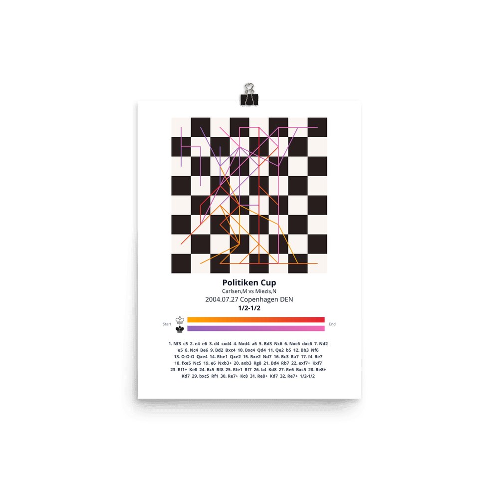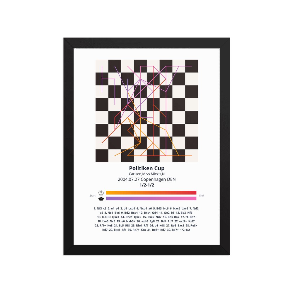 Museum-quality poster on thick, durable matte paper. A sharp, clean look for any chess visualisation.