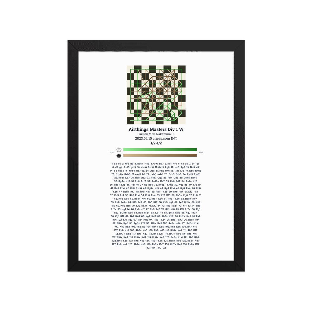 Museum-quality poster on thick, durable matte paper. A sharp, clean look for any chess visualisation.