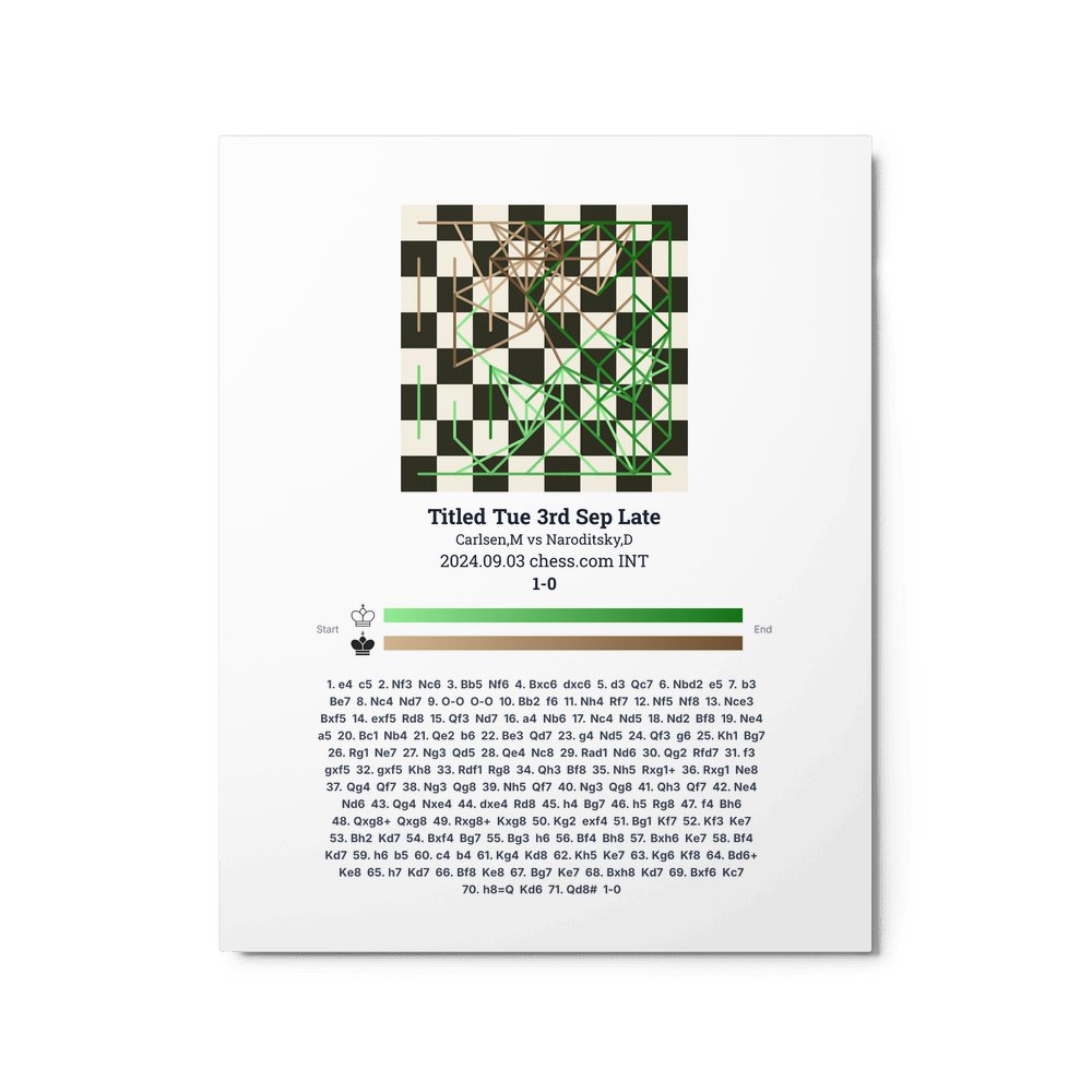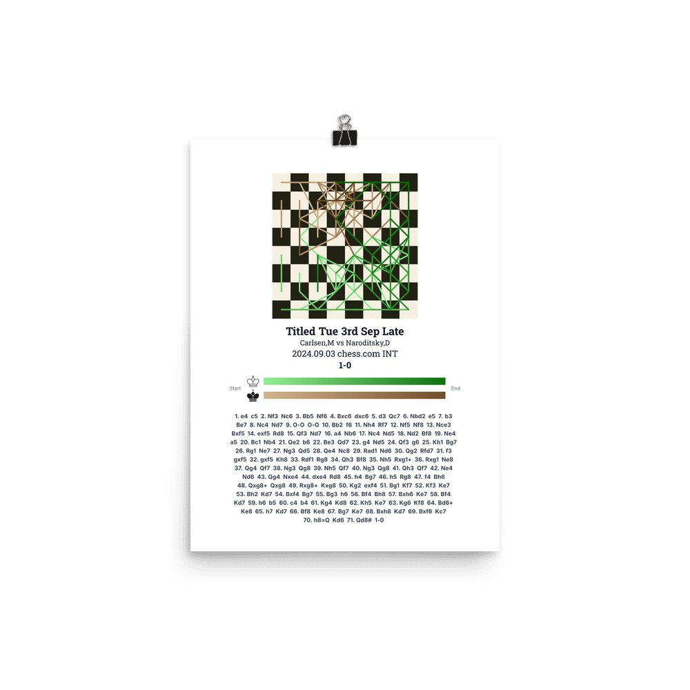 Museum-quality poster on thick, durable matte paper. A sharp, clean look for any chess visualisation.