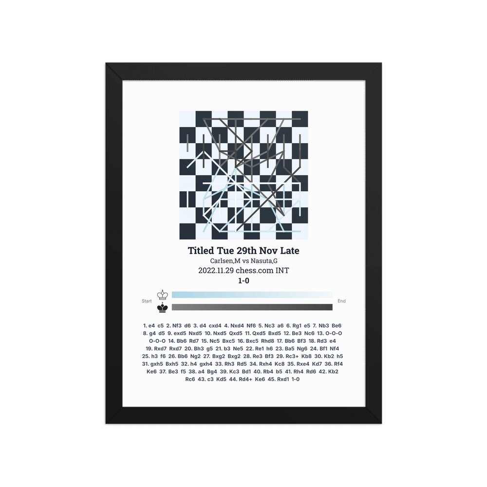 Museum-quality poster on thick, durable matte paper. A sharp, clean look for any chess visualisation.