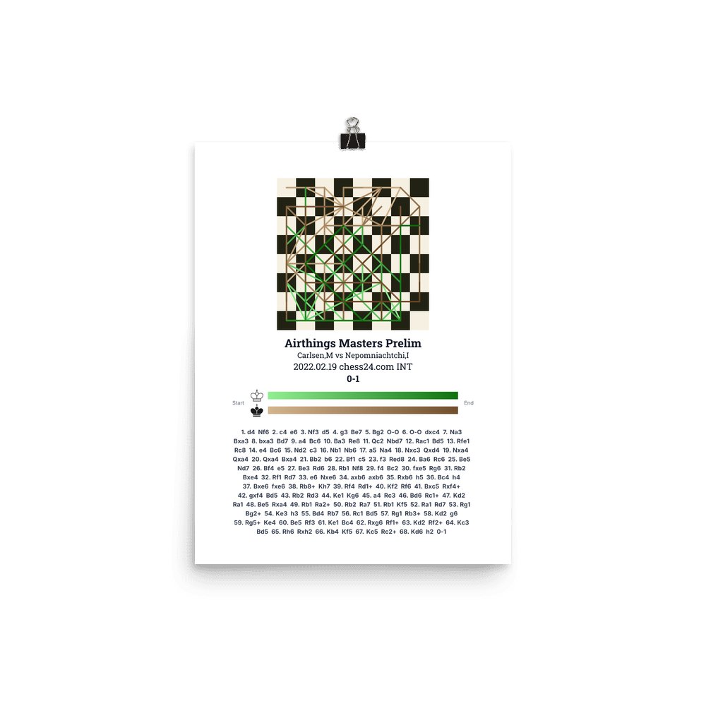 Museum-quality poster on thick, durable matte paper. A sharp, clean look for any chess visualisation.