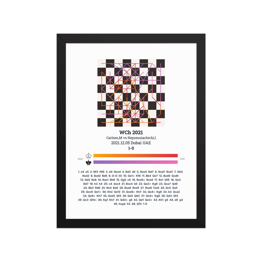 Museum-quality poster on thick, durable matte paper. A sharp, clean look for any chess visualisation.