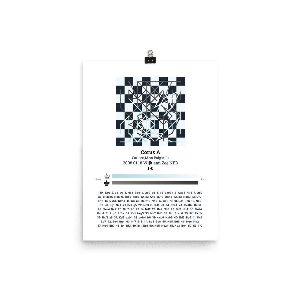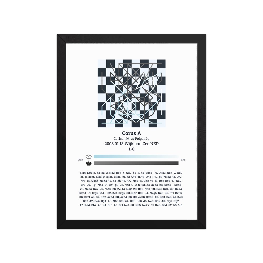 Museum-quality poster on thick, durable matte paper. A sharp, clean look for any chess visualisation.