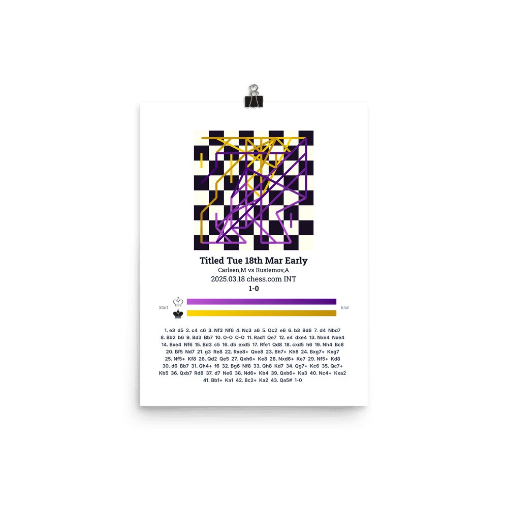 Museum-quality poster on thick, durable matte paper. A sharp, clean look for any chess visualisation.
