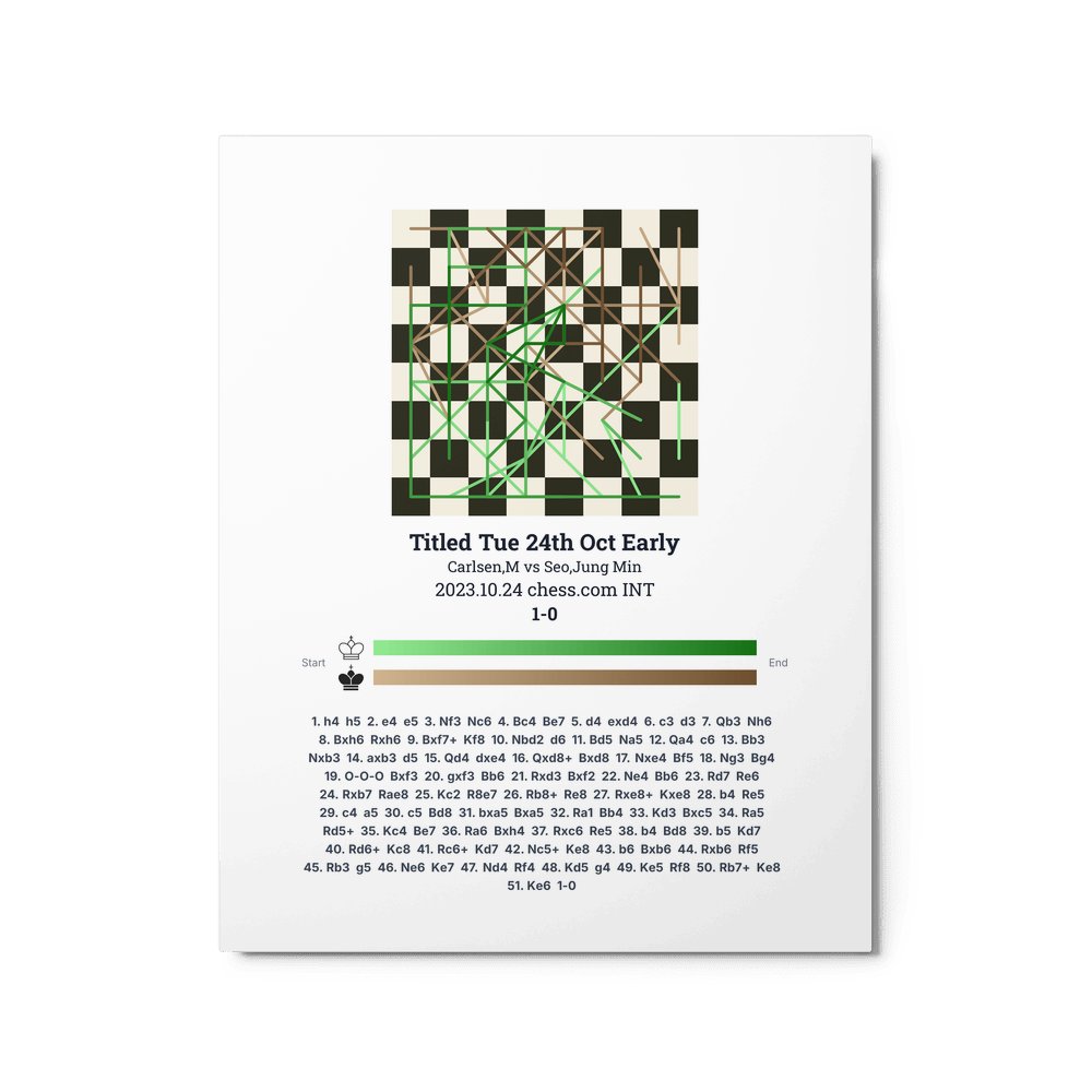 Museum-quality poster on thick, durable matte paper. A sharp, clean look for any chess visualisation.