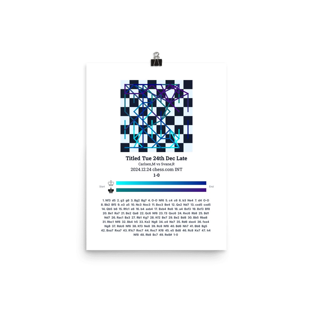 Museum-quality poster on thick, durable matte paper. A sharp, clean look for any chess visualisation.