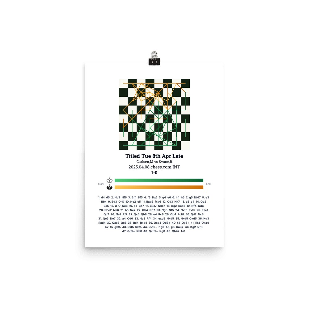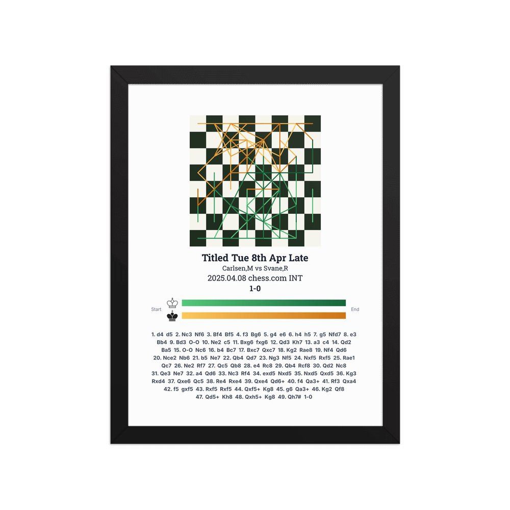 Museum-quality poster on thick, durable matte paper. A sharp, clean look for any chess visualisation.