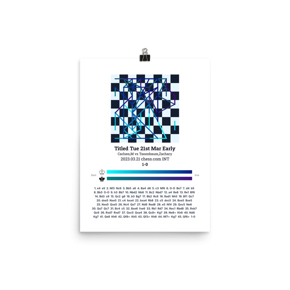 Museum-quality poster on thick, durable matte paper. A sharp, clean look for any chess visualisation.