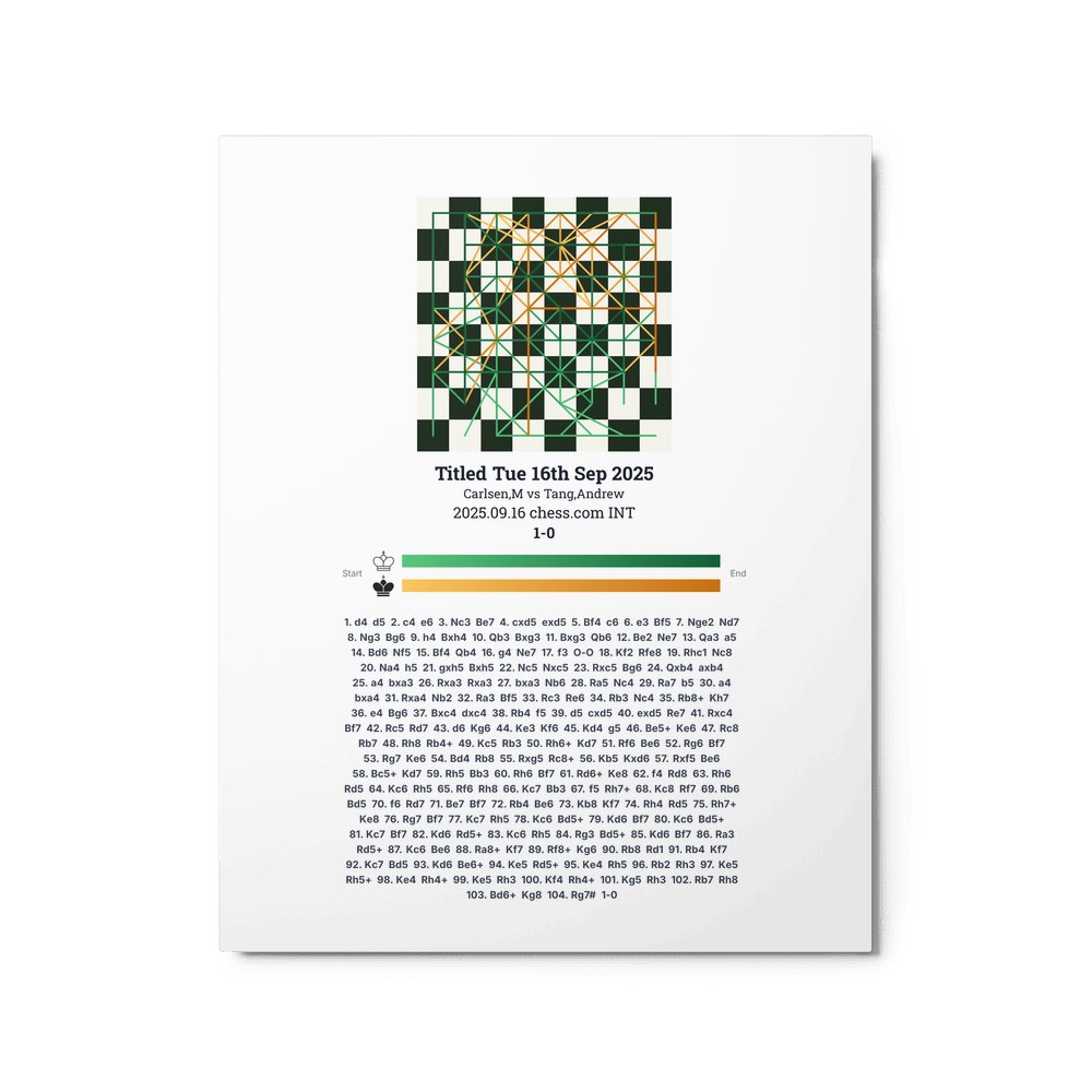 Museum-quality poster on thick, durable matte paper. A sharp, clean look for any chess visualisation.