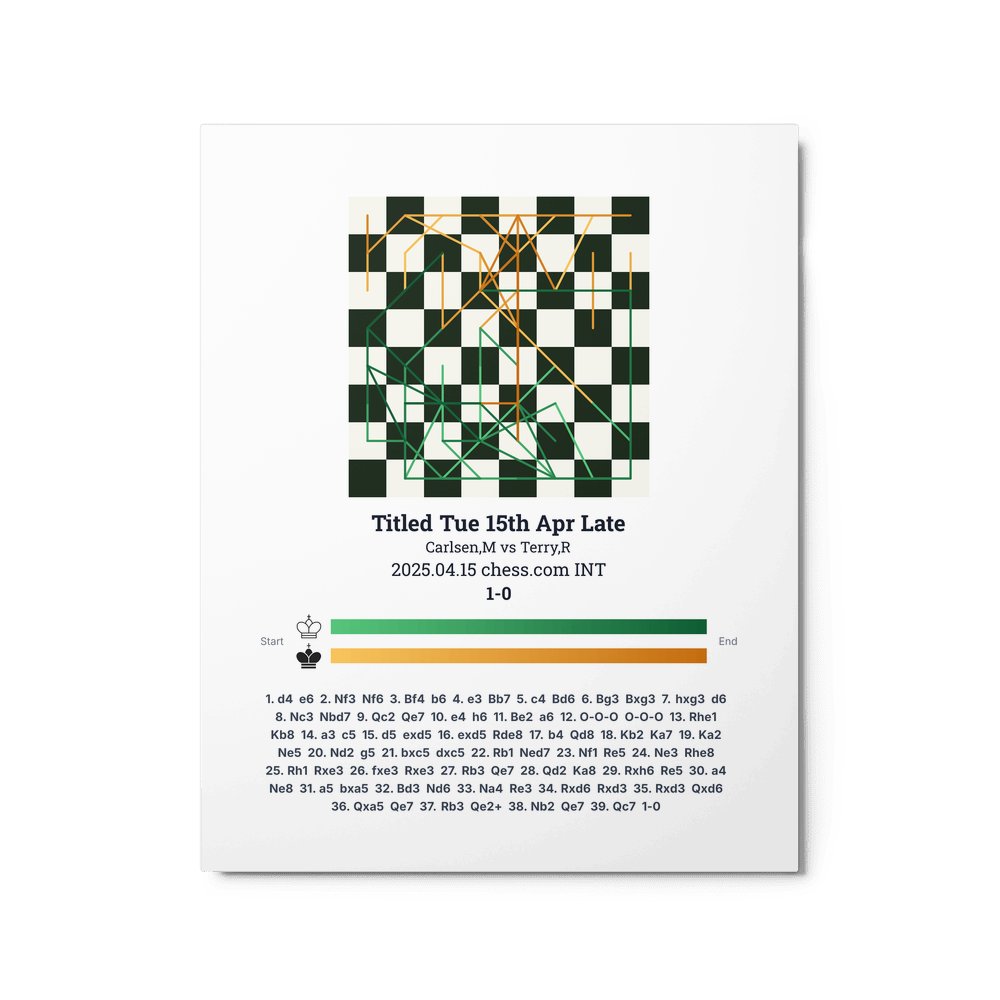 Museum-quality poster on thick, durable matte paper. A sharp, clean look for any chess visualisation.