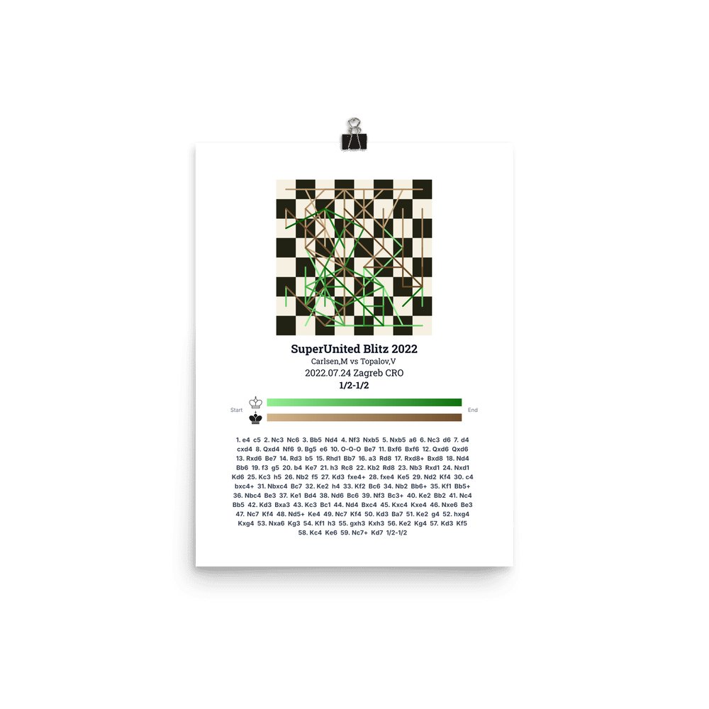 Museum-quality poster on thick, durable matte paper. A sharp, clean look for any chess visualisation.