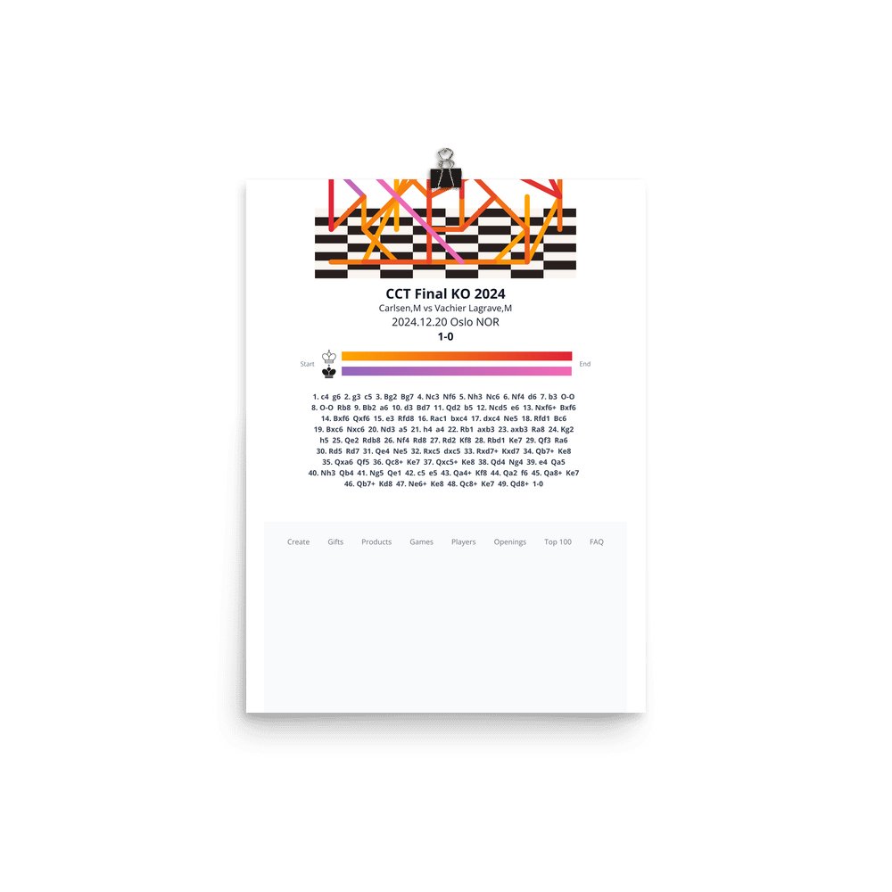 Museum-quality poster on thick, durable matte paper. A sharp, clean look for any chess visualisation.