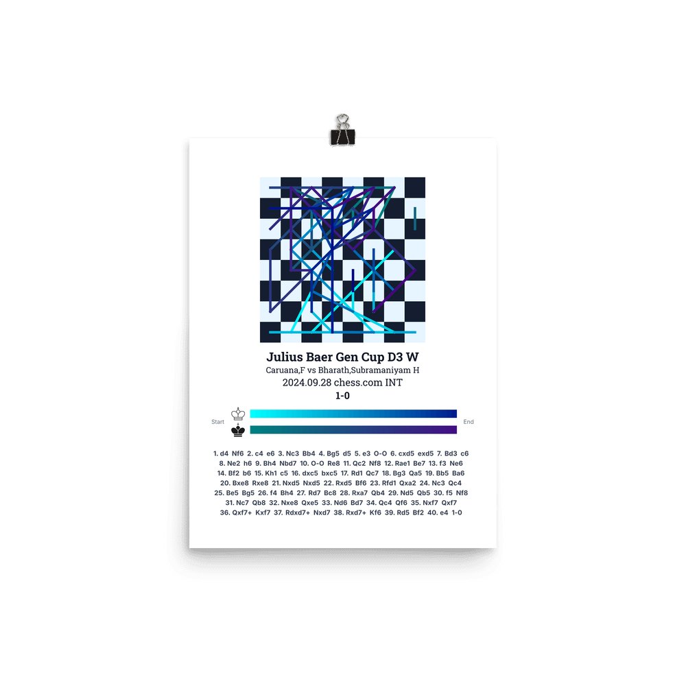 Museum-quality poster on thick, durable matte paper. A sharp, clean look for any chess visualisation.