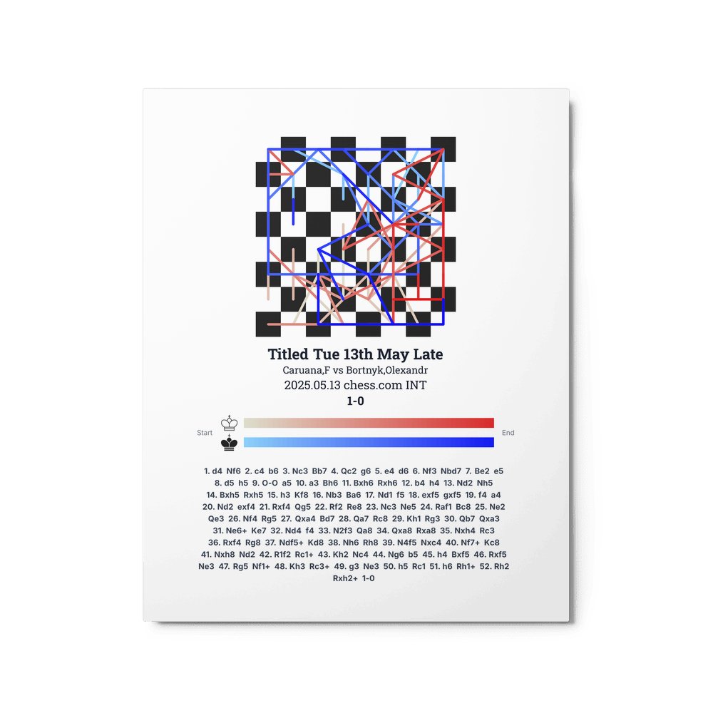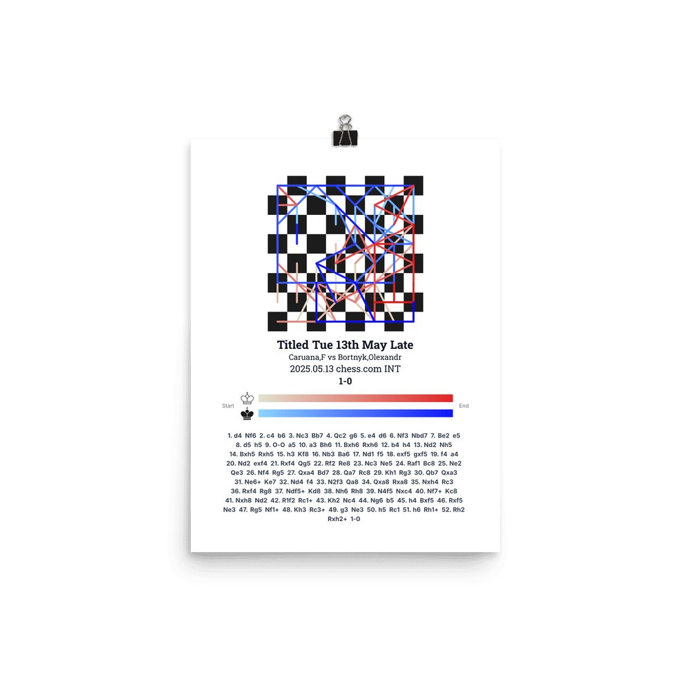 Museum-quality poster on thick, durable matte paper. A sharp, clean look for any chess visualisation.
