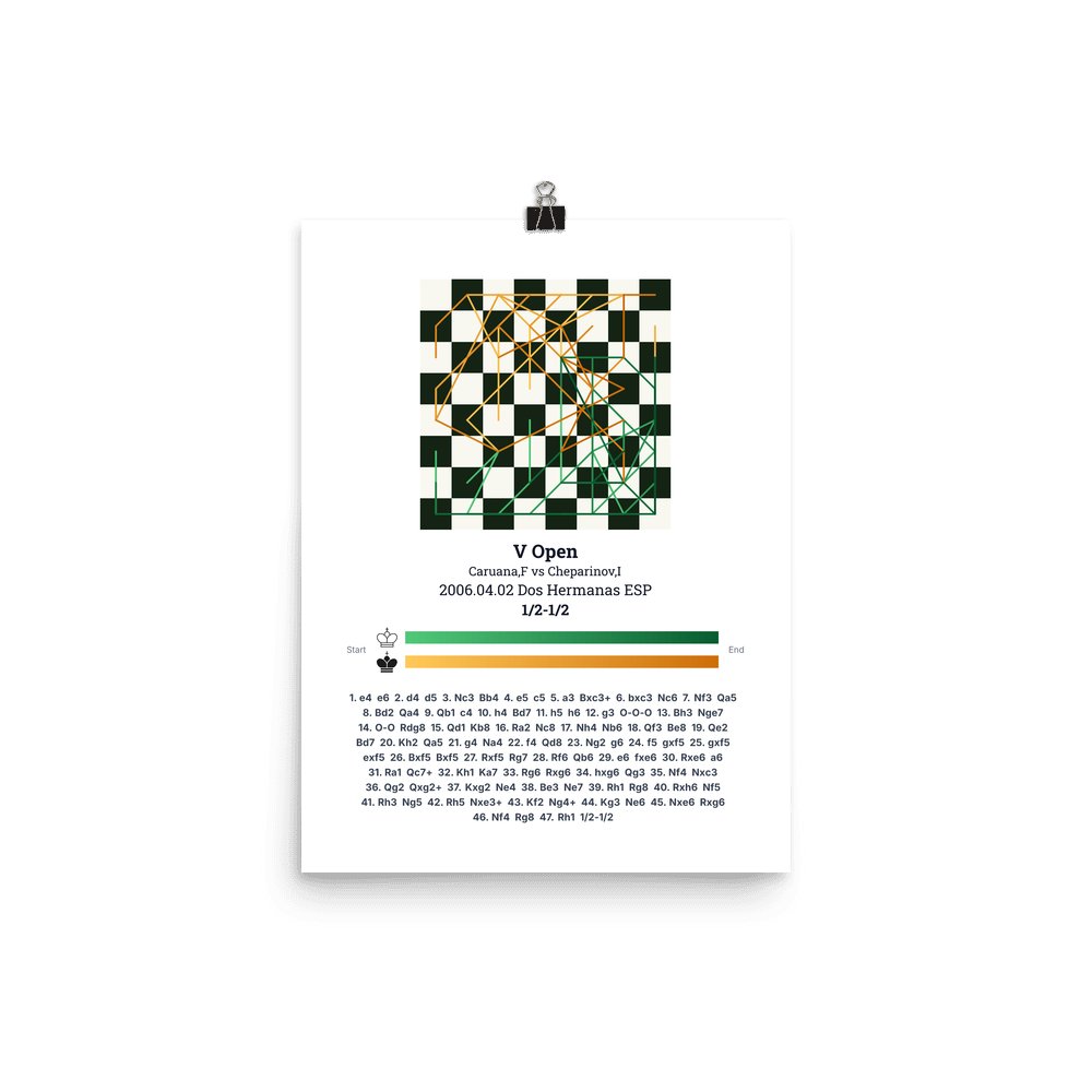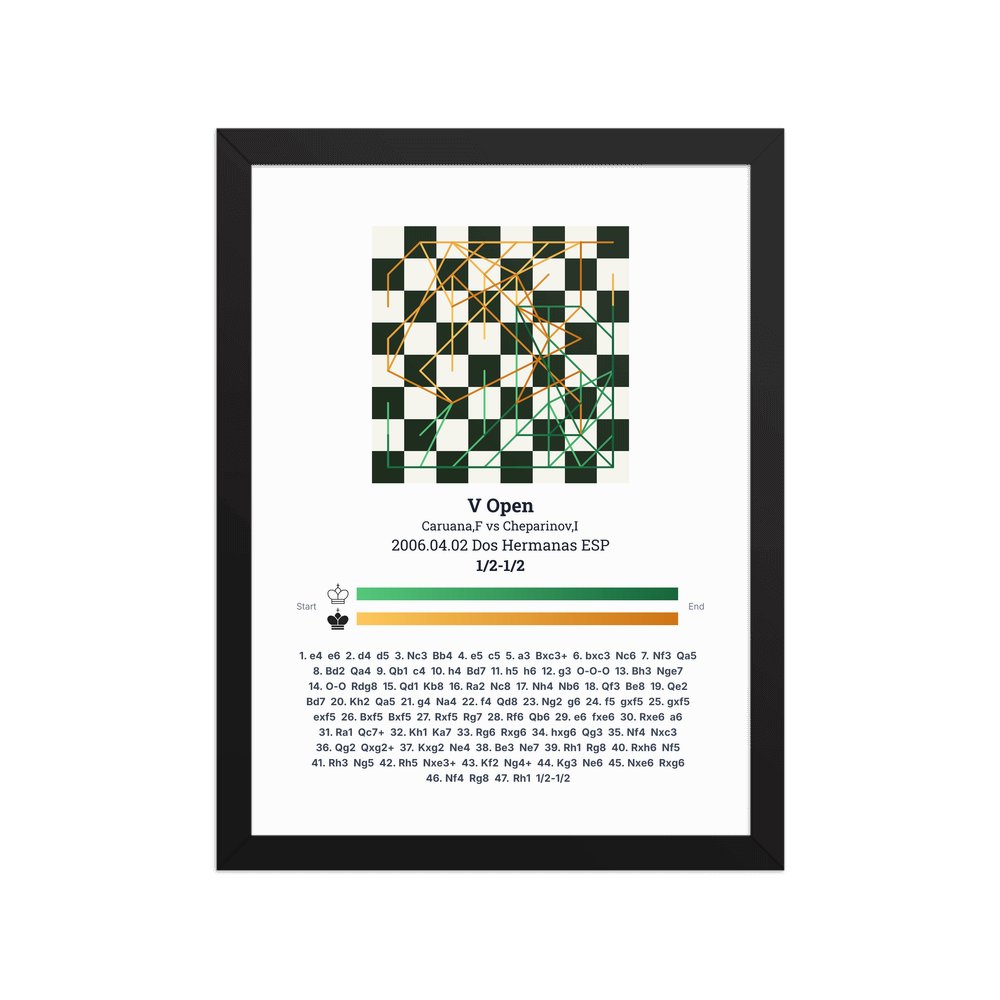 Museum-quality poster on thick, durable matte paper. A sharp, clean look for any chess visualisation.