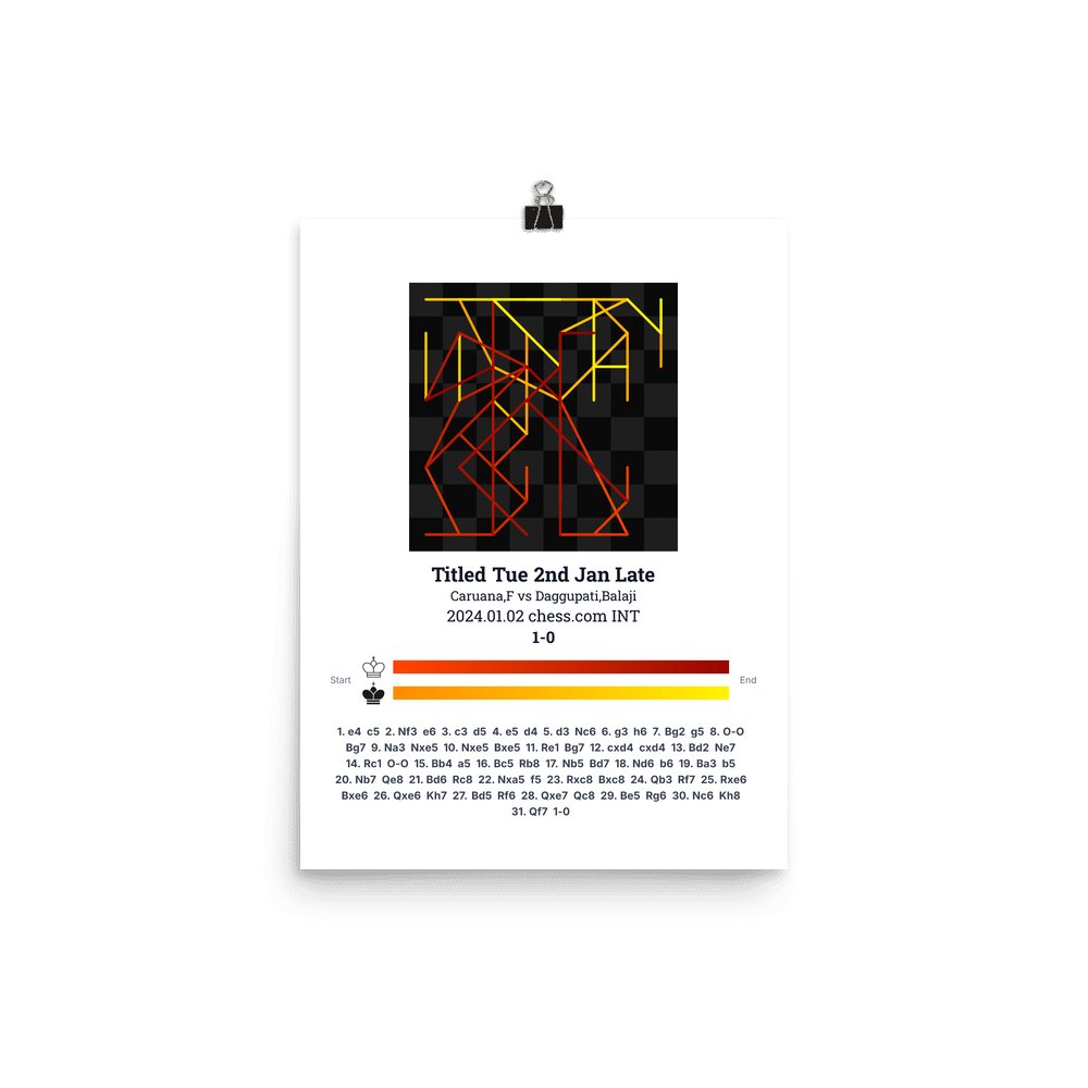 Museum-quality poster on thick, durable matte paper. A sharp, clean look for any chess visualisation.