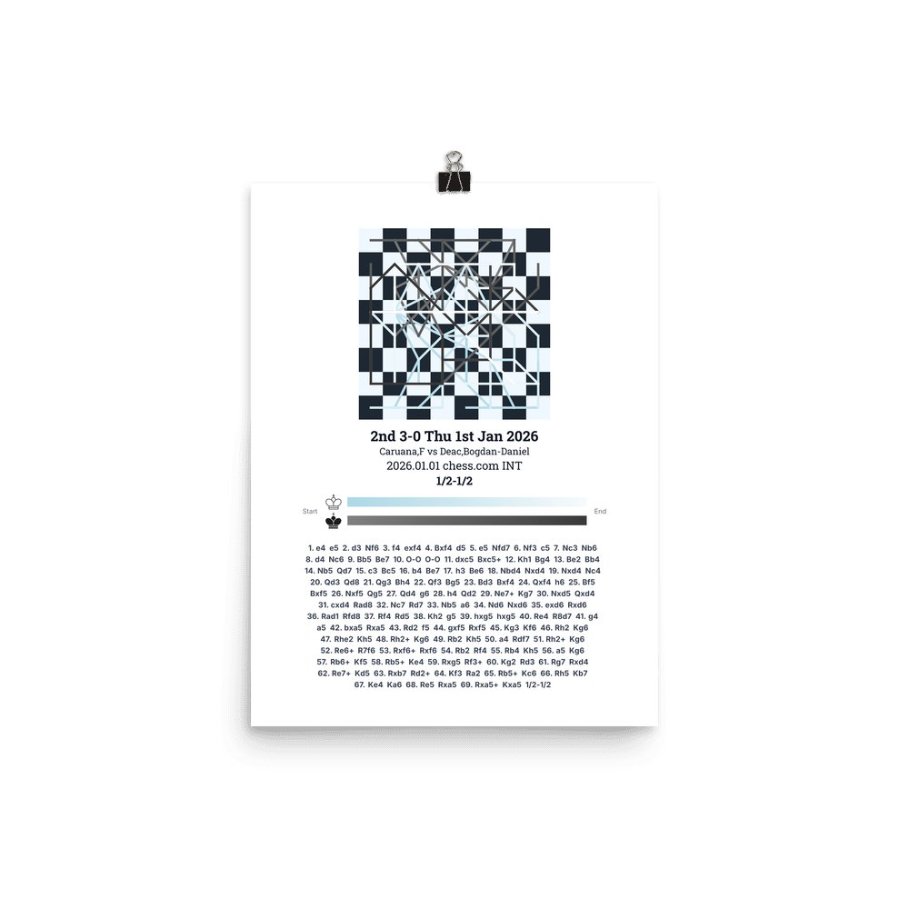 Museum-quality poster on thick, durable matte paper. A sharp, clean look for any chess visualisation.