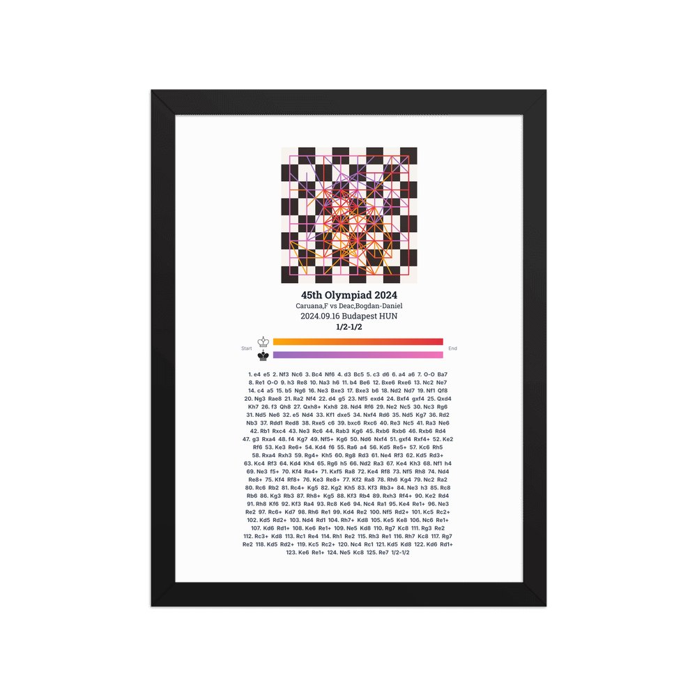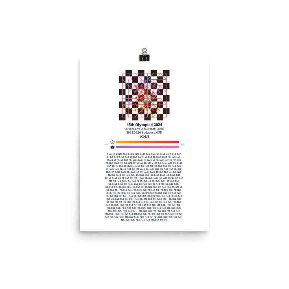 Museum-quality poster on thick, durable matte paper. A sharp, clean look for any chess visualisation.
