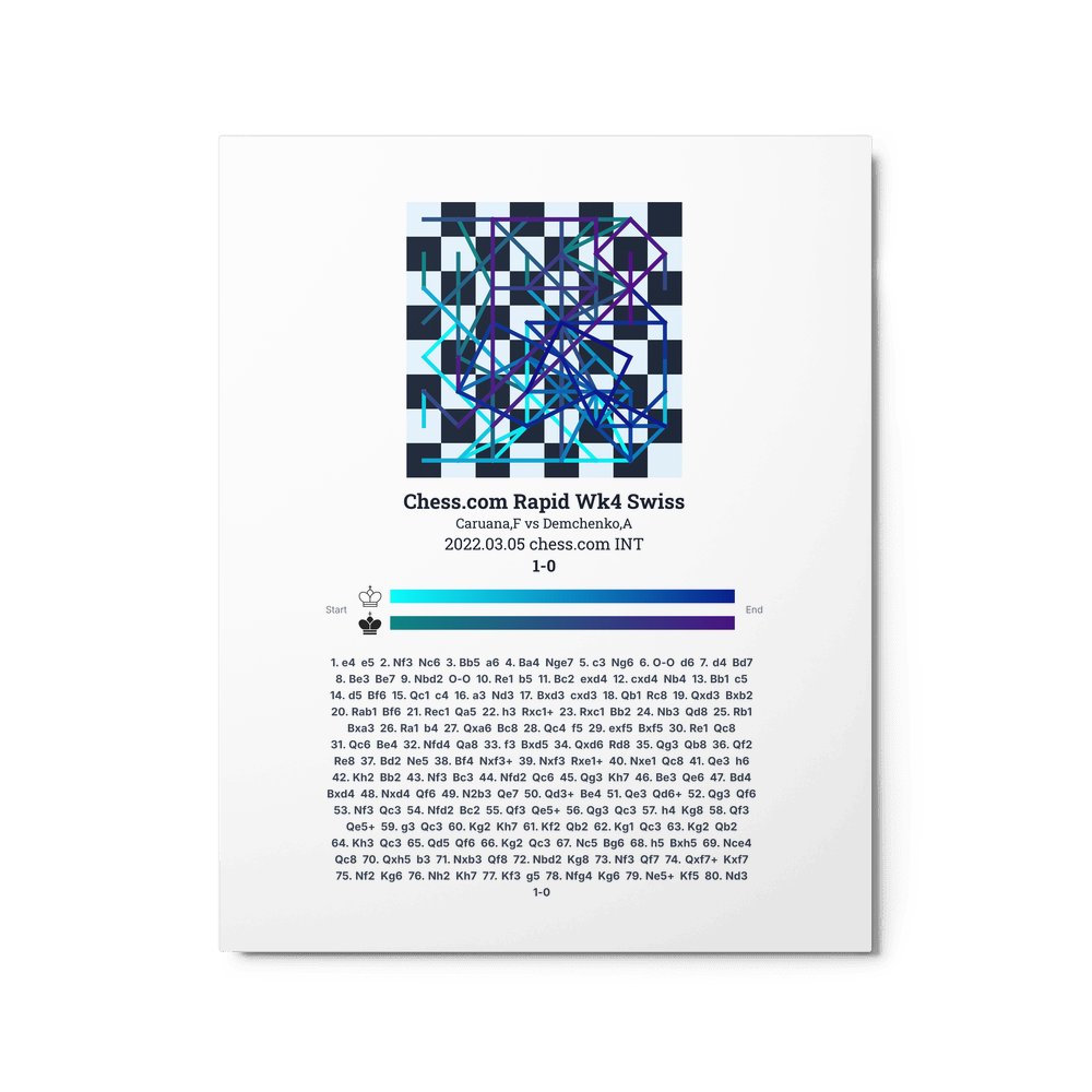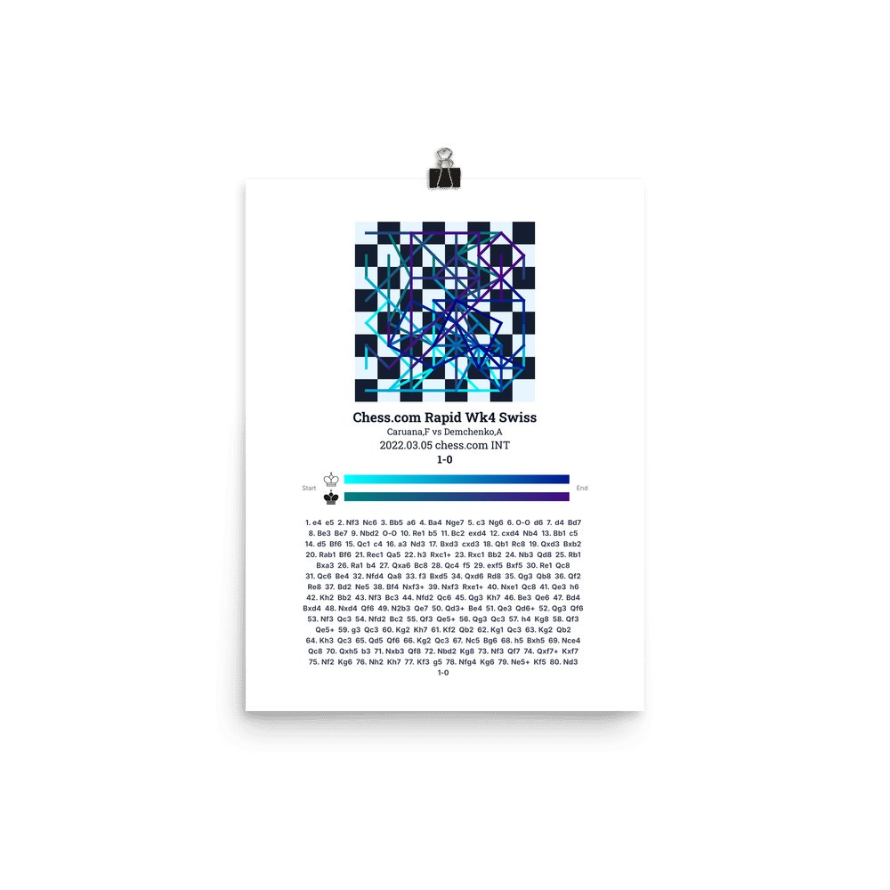 Museum-quality poster on thick, durable matte paper. A sharp, clean look for any chess visualisation.