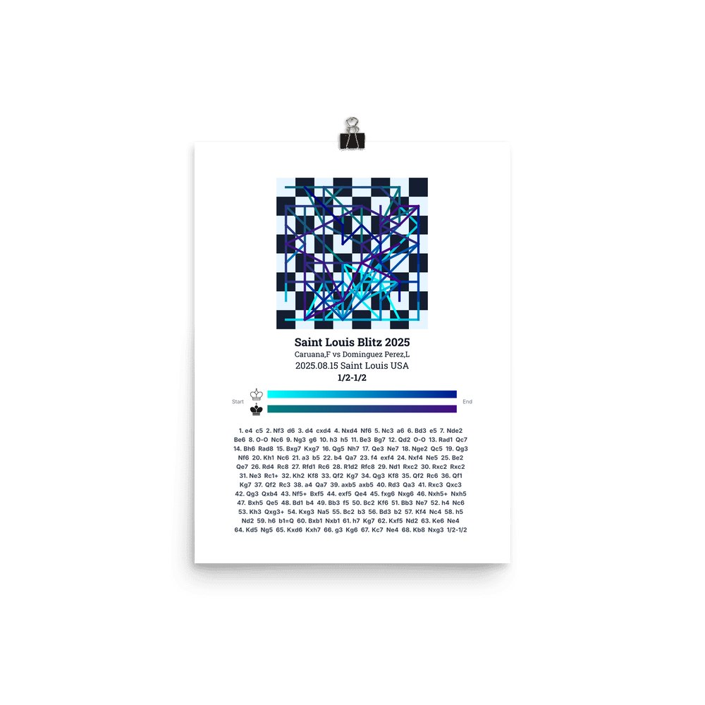 Museum-quality poster on thick, durable matte paper. A sharp, clean look for any chess visualisation.