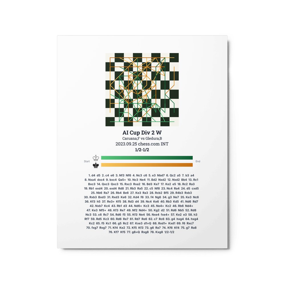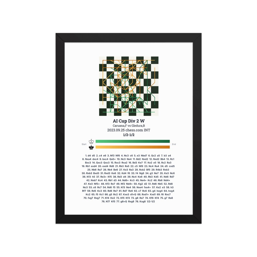 Museum-quality poster on thick, durable matte paper. A sharp, clean look for any chess visualisation.