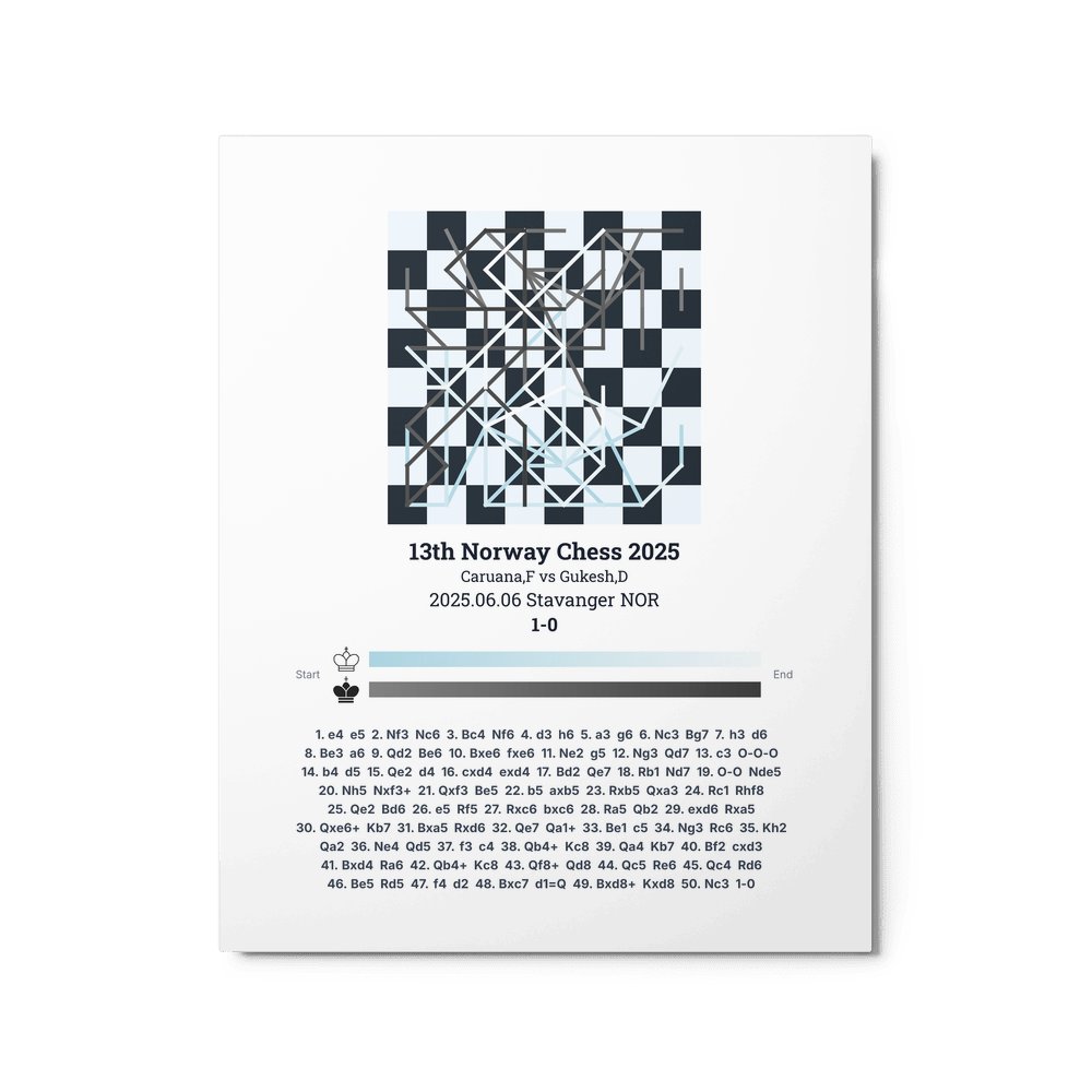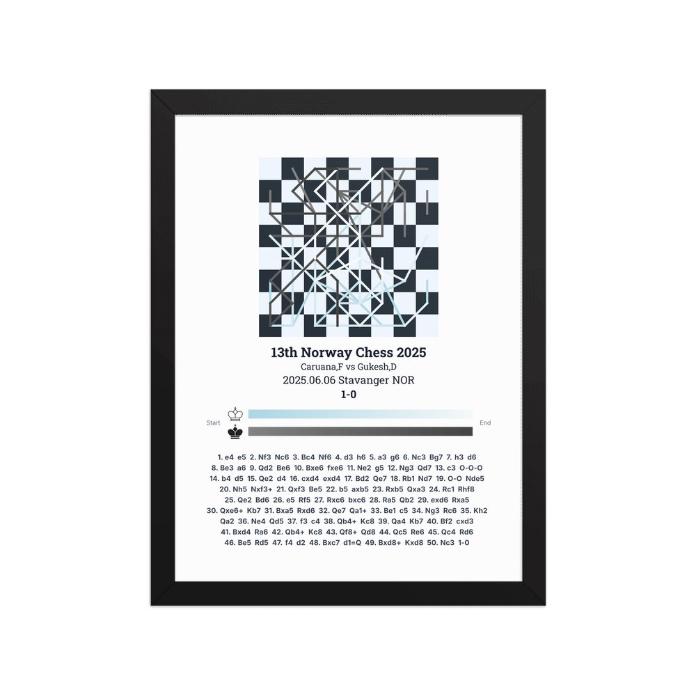 Museum-quality poster on thick, durable matte paper. A sharp, clean look for any chess visualisation.