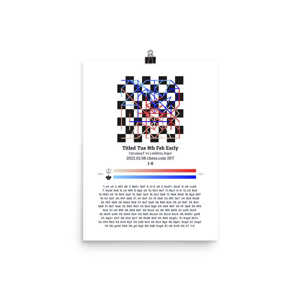 Museum-quality poster on thick, durable matte paper. A sharp, clean look for any chess visualisation.