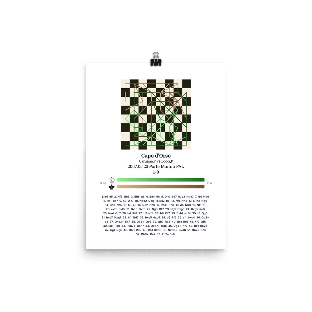 Museum-quality poster on thick, durable matte paper. A sharp, clean look for any chess visualisation.