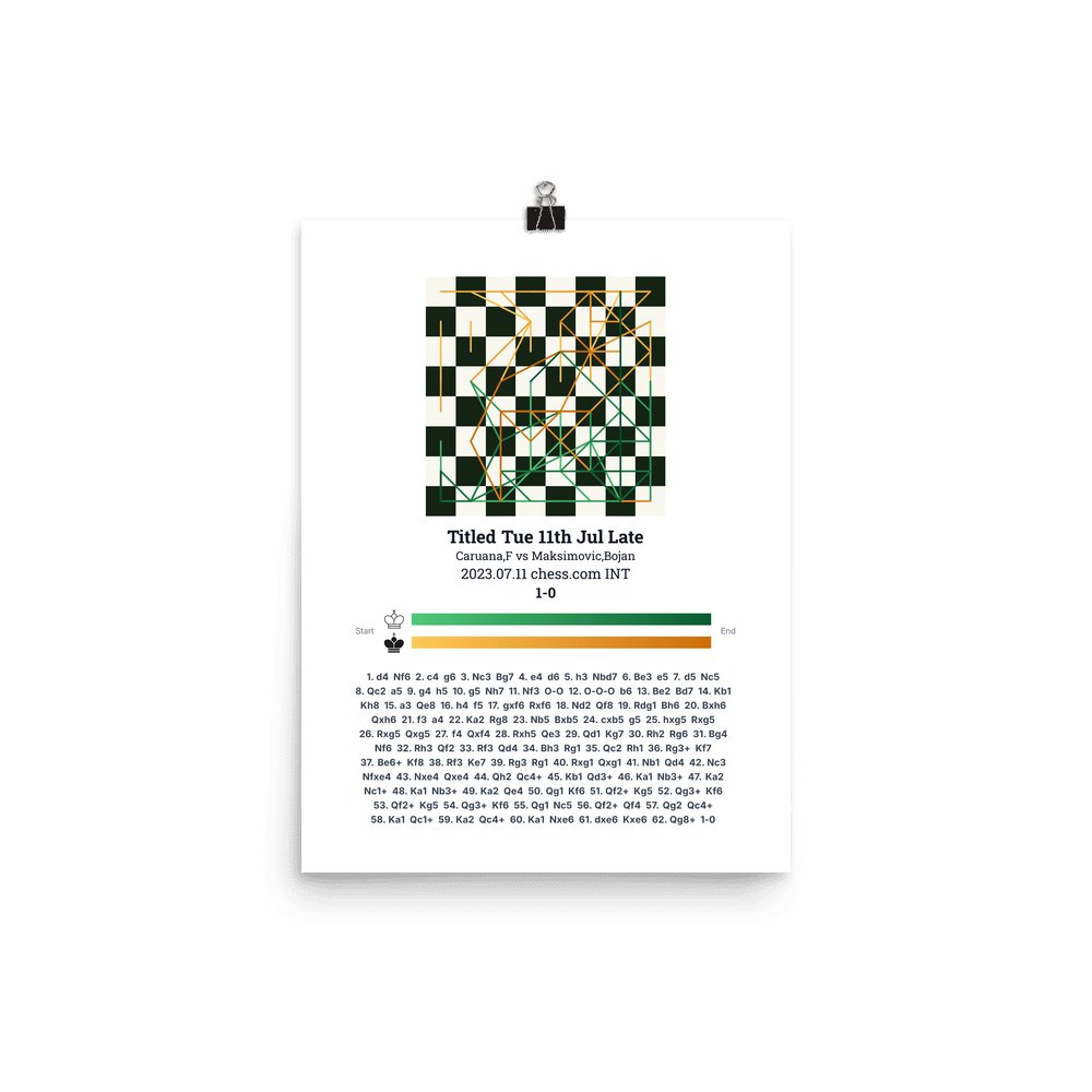 Museum-quality poster on thick, durable matte paper. A sharp, clean look for any chess visualisation.