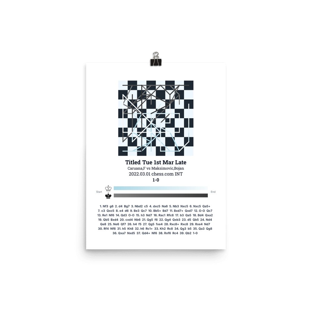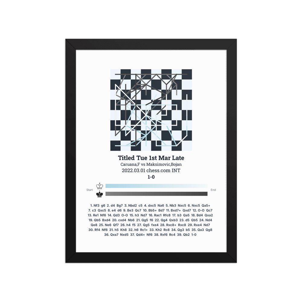 Museum-quality poster on thick, durable matte paper. A sharp, clean look for any chess visualisation.