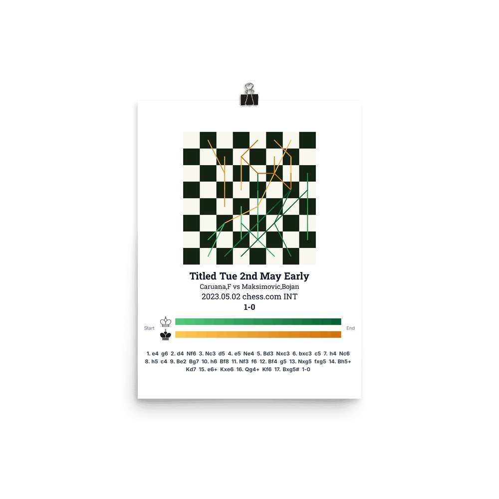 Museum-quality poster on thick, durable matte paper. A sharp, clean look for any chess visualisation.