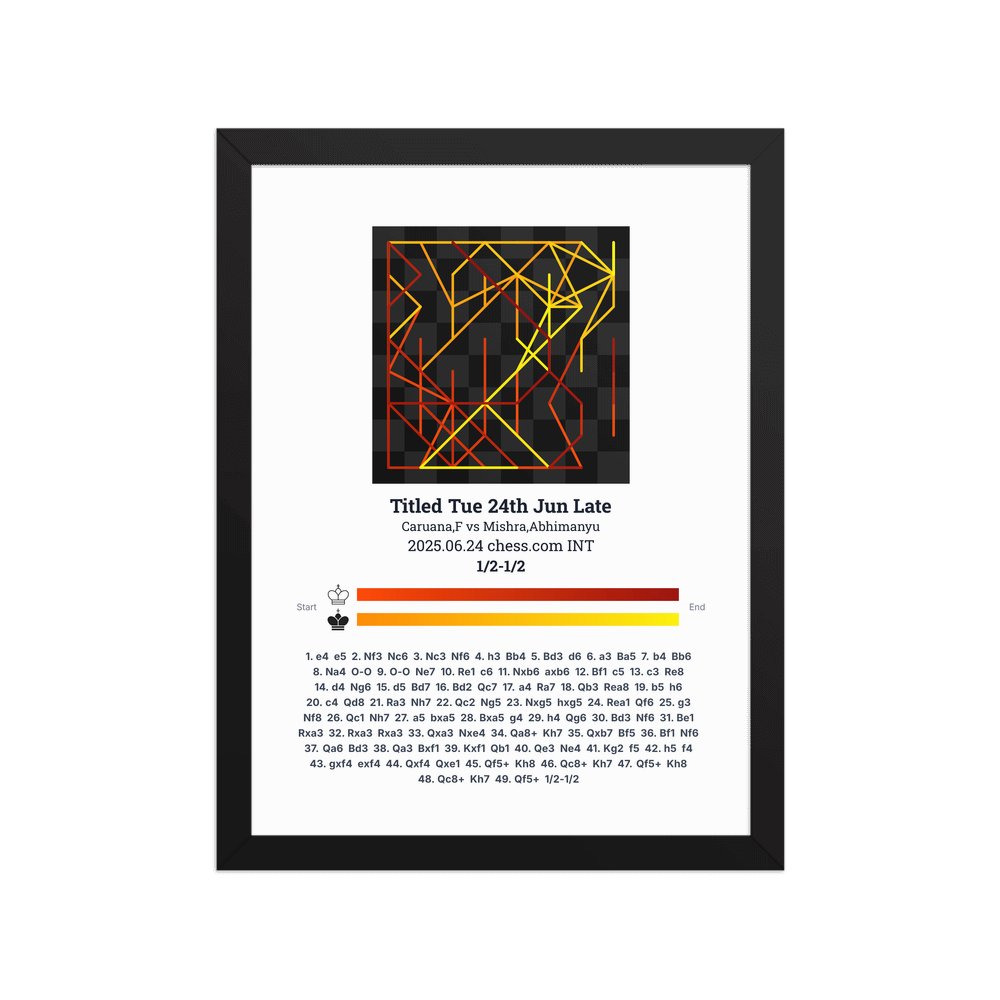 Museum-quality poster on thick, durable matte paper. A sharp, clean look for any chess visualisation.