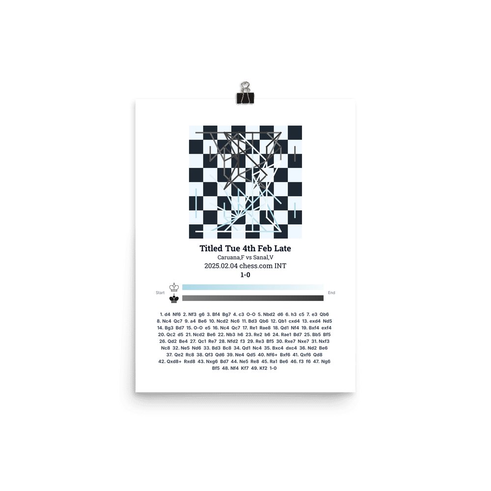 Museum-quality poster on thick, durable matte paper. A sharp, clean look for any chess visualisation.