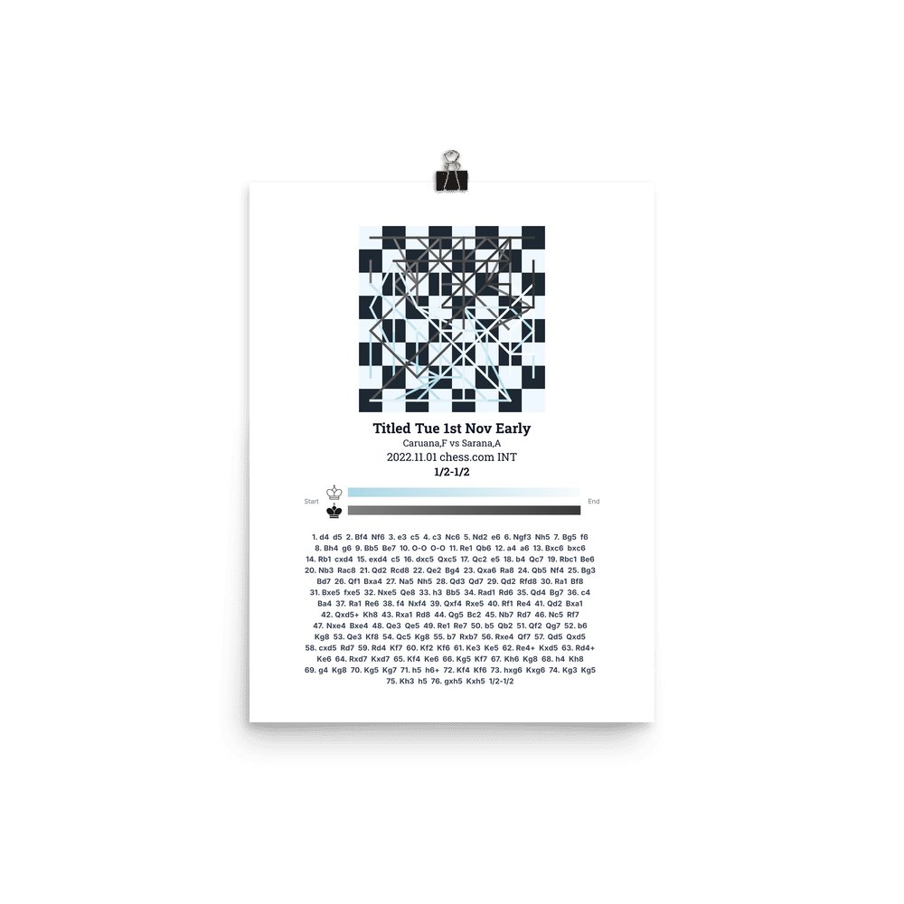 Museum-quality poster on thick, durable matte paper. A sharp, clean look for any chess visualisation.
