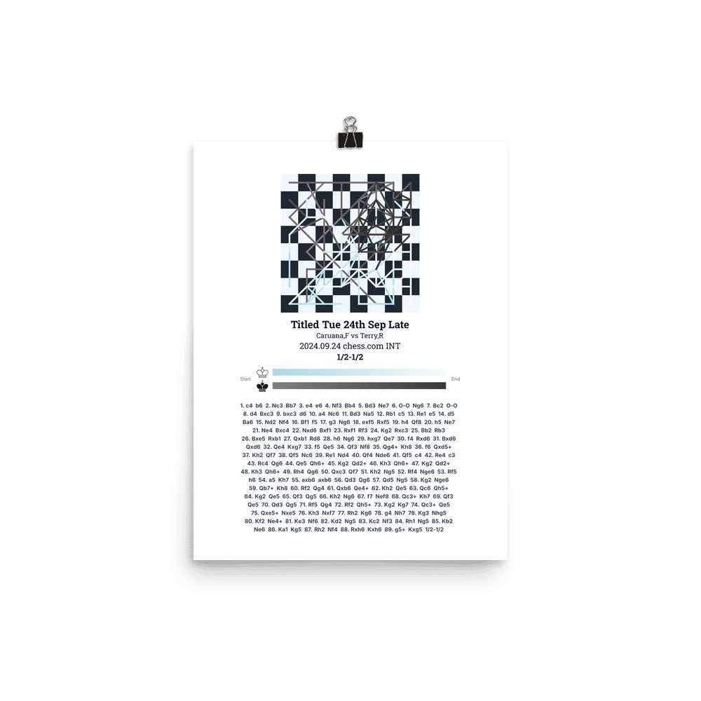 Museum-quality poster on thick, durable matte paper. A sharp, clean look for any chess visualisation.